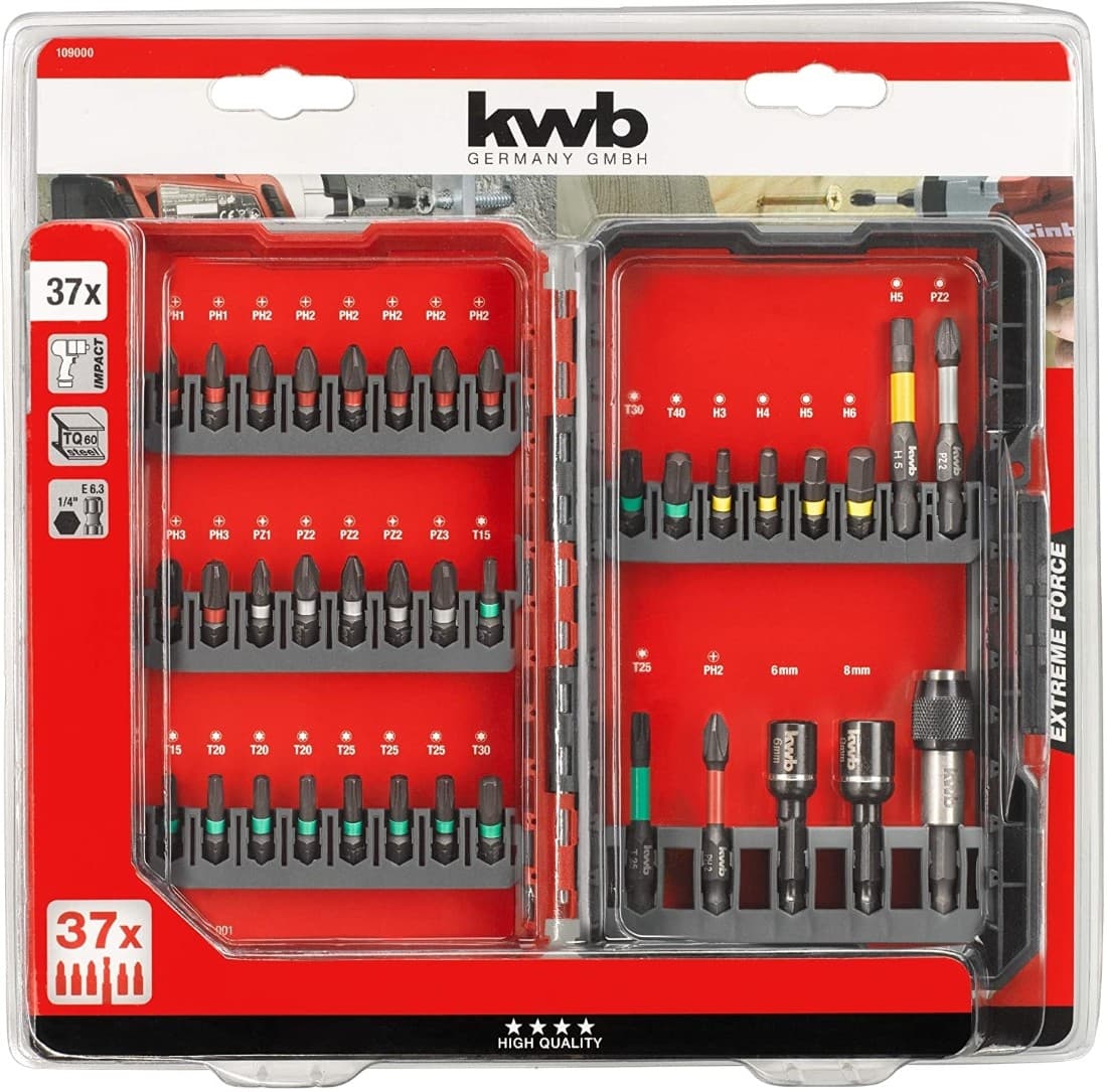 Компоненты в комплекте Биты в комплекте: 2x PH-1, 6x PH-2, 2x PH-3, 1x PZ-1, 3x PZ-2, 1x PZ-3, 2x T-15, 3x T-20, 3x T-25 , 2x T-30 1x T-40, 1x Hex 3, 4, 5, 6 мм длиной 25 мм и с валом C 6 мм 3 и 1 x PH-2, 1 x PZ-2, 1 x T-25, 1 шестигранник 5 мм длиной 50 мм и валом E 6.3.
